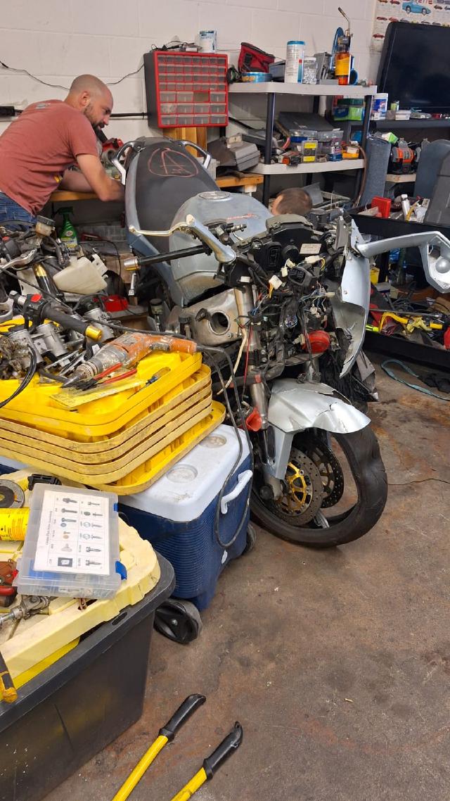 Once we were fueled up, it was time to play mechanic. I needed a new tire to replace my thrice-puncture one. I remembered on my ride down yesterday that back in January, I had reached out to a used bike parts dealer in LA about a rear wheel bearing I needed for my other Futura. At the time, he had told me that he would only sell the bearing along with the entire rear wheel, and that I’d need to pick the parts up in person. Those were both dealbreakers at the time — but now I was nearby and had an opportunity to kill two birds with one stone. I looked up the dealer, Serge, and found out that he still had the parts available. So Clo and I took an Uber out to his warehouse in Canoga Park and set to work pulling the wheel and rear axle assembly off of the wrecked bike.
